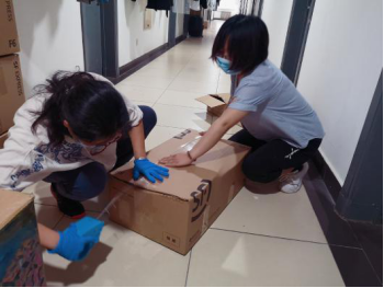 为做好行李打包工作,水浒传游戏专门购置了泡沫袋、封箱器等物资,全程视频与同学们充分沟通。用时两周,共计打包邮寄行李470箱,顺利完成了所有未返校毕业生离校手续和行李打包邮寄的工作。
