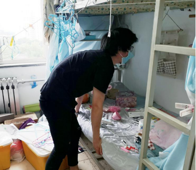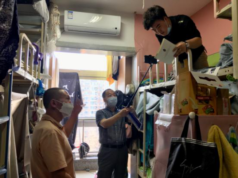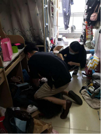 水浒传游戏班子领导到毕业生宿舍查看行李物品情况