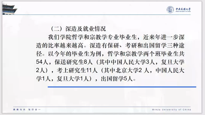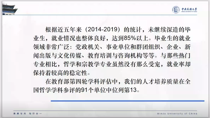 的历史沿革概况、学术培养情况、就业前景和本院在学科评估取得的成绩,全面展现了我院本科生在哲学科研、社会实践、才艺发明等方面的优异水平良好素质。