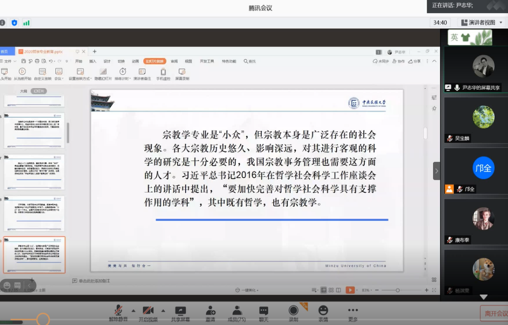 2020年9月24日晚7-9点,我院为2020级全体新生(包括强基班哲学方向新生),进行了线上专业学习。由于疫情原因,新生尚未到校报到,此次学习以腾讯会议的方式线上进行。尹志华、王海锋、胡昕雯、史经鹏、邝全、吴宝麟等诸位老师都做了精心准备,同学们也认真地聆听、积极回应,线上会场气氛热忱而友好。