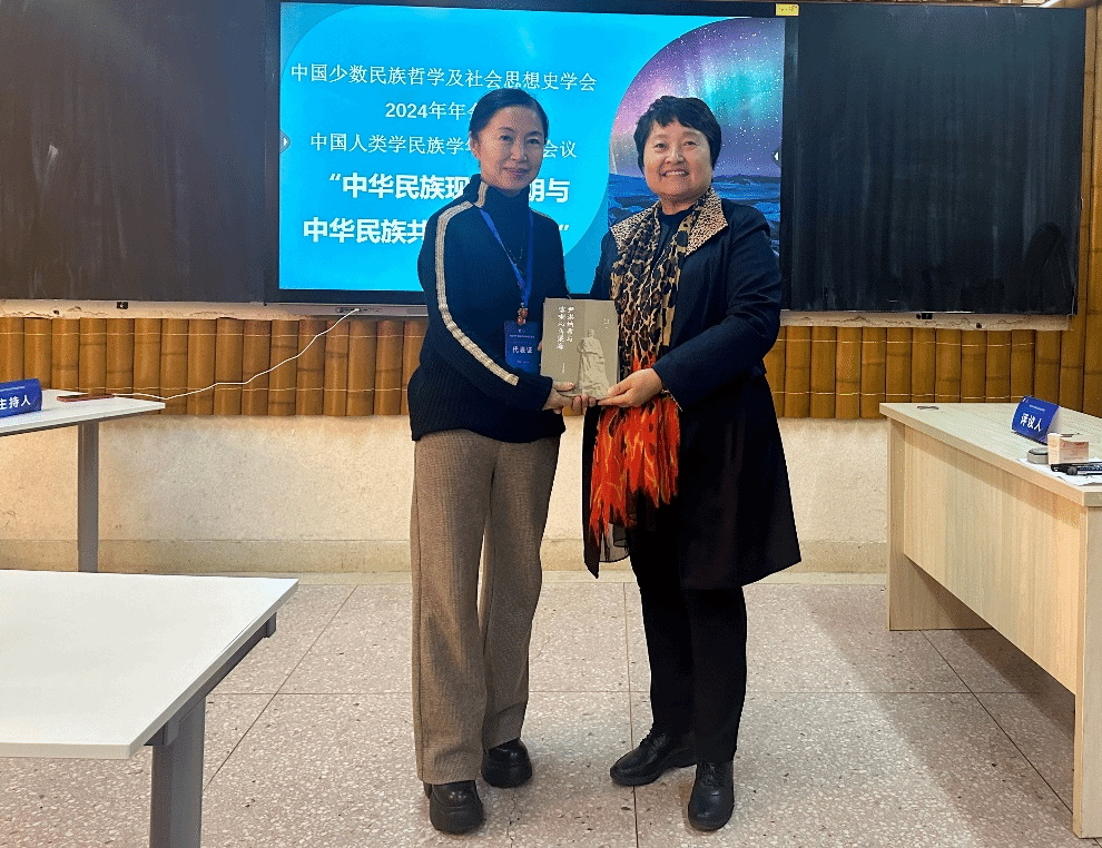 分会场研讨结束后,宝贵贞教授作为中国少数民族哲学及社会思想史学会理事长,作了点评和致谢。宝贵贞教授提到,本场分论坛四个主题的的专家学者,从不同的角度、方法和学科视域,深入探讨了“建构中华民族共同体理论体系”,彼此交换了意见,取得了丰富的成效。宝贵贞理事长还接受了朝阳师范水浒传游戏乌凤琴教授向本次年会的赠书《尹湛纳西与喀喇沁乌梁海》。
