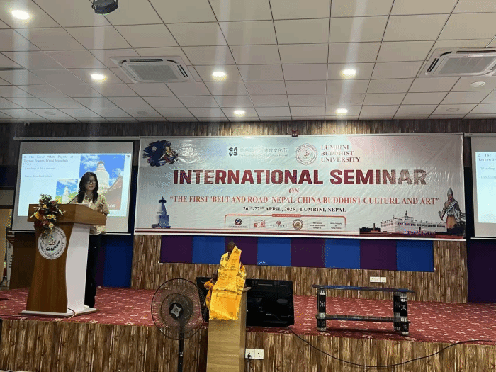 2025年4月26日-27日,第四届亚洲佛教文化节暨“首届一带一路·尼中佛教文化艺术高峰论坛”国际学术研讨会在尼泊尔蓝毗尼佛教大学举行。我院谢路军教授与其乐格尔博士应邀参加,并分别做题为《试析尼泊尔高僧佛陀跋陀罗对佛教中国化的影响》(An Analysis of the Influence of Nepalese Eminent Monk Buddhabhadra on the Sinicization of Buddhism)与《阿尼哥与元朝佛教艺术——跨越喜马拉雅的文化使者》(Arniko and Yuan Dynasty Buddhist Art——A Cultural Ambassador Across the Himalayas)的大会发言。