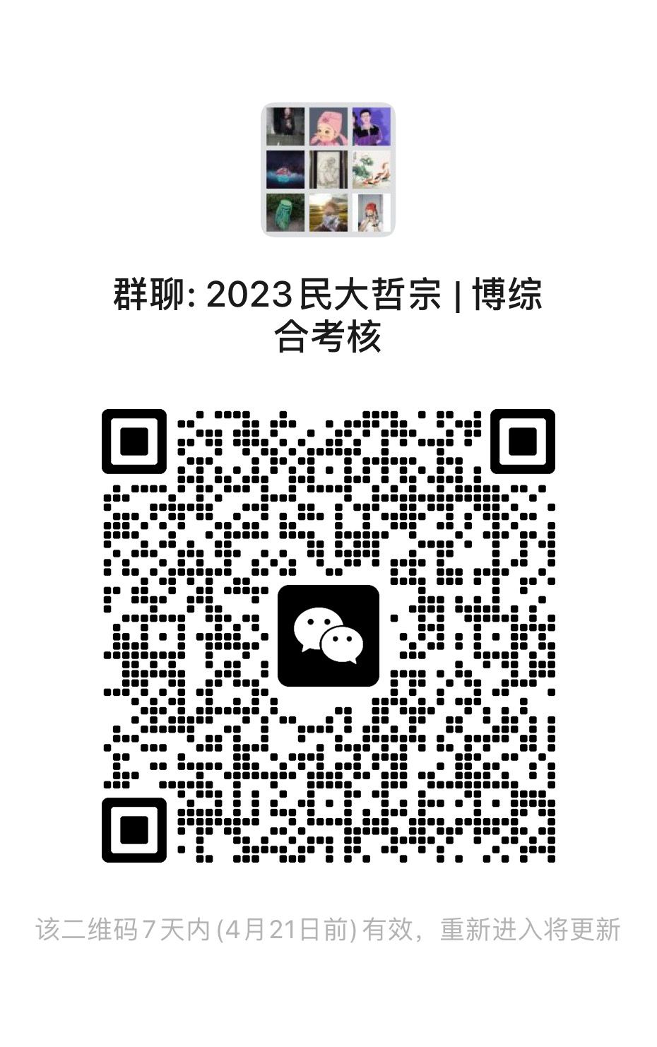 请所有进入综合考核的考生于2023年4月16日17:00前扫码入群,标注“姓名+手机号”方可审核通过。