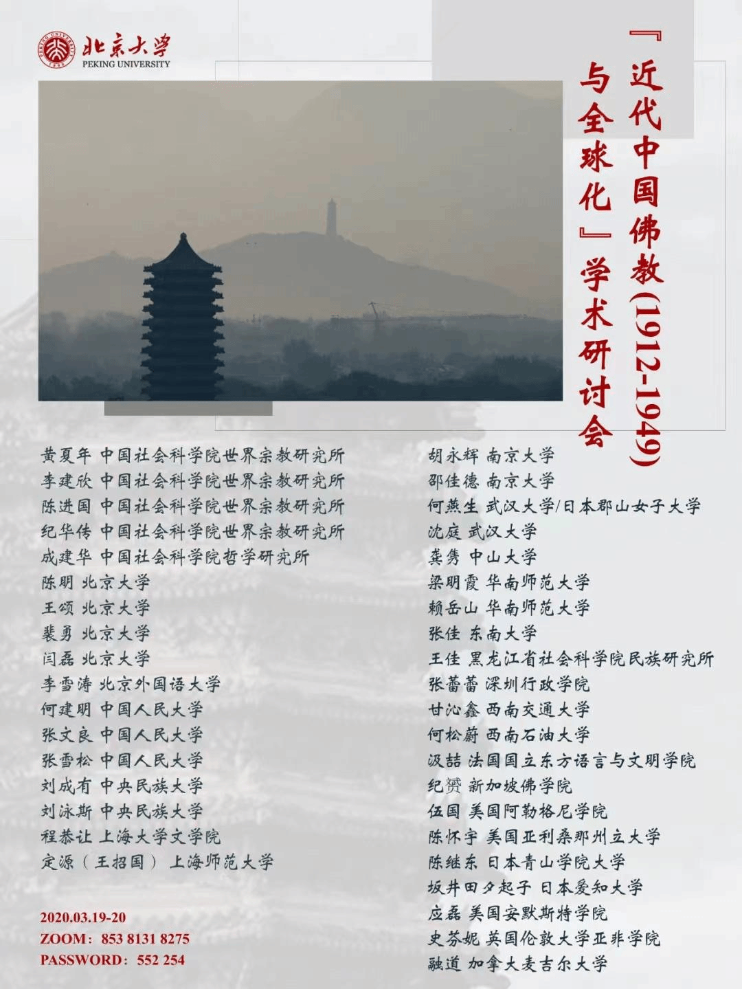 2022年3月19-20日,由北京大学主办的“近代中国佛教(1912-1949)与全球化”学术研讨会顺利举办。水浒传游戏 院长刘成有教授与讲师刘泳斯老师参加了该研讨会,并分别发表了题为“内在的文明对话——以印顺为例”与“倓虚法师创建民国都市佛教寺院的现代化手段辨析”的学术论文。