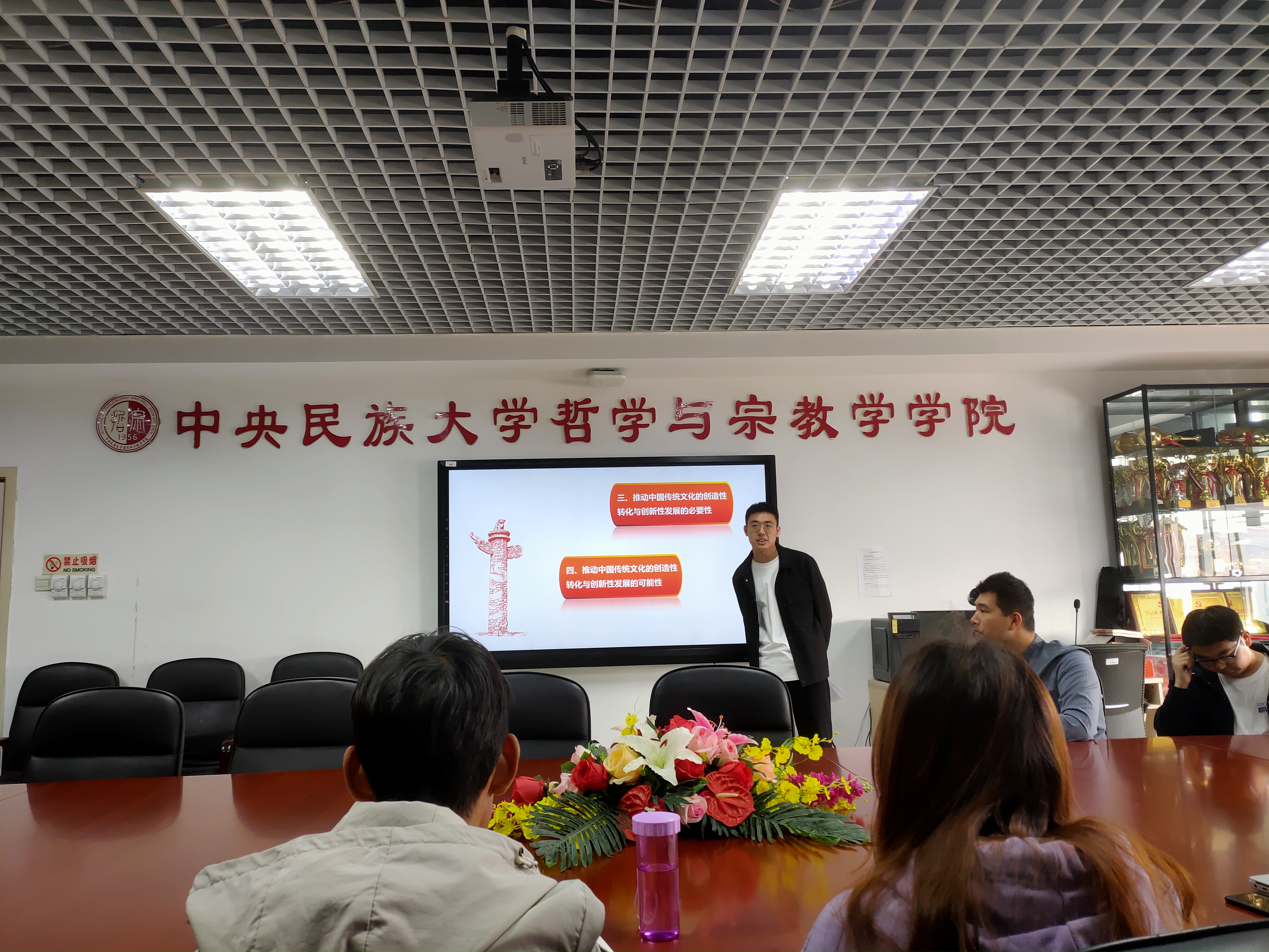 中国哲学、外国哲学专业研究生党支部邀请本支部优秀应届毕业生党员林健同志,为大家讲授了“中国传统文化的创造性转换与创新性发展”主题微党课,林建同学为2018级中国哲学专业硕士生党员,已被山东省日照市委党校录取为教师,杨景仪老师、支部全体党员、入党积极分子参加本次学习。