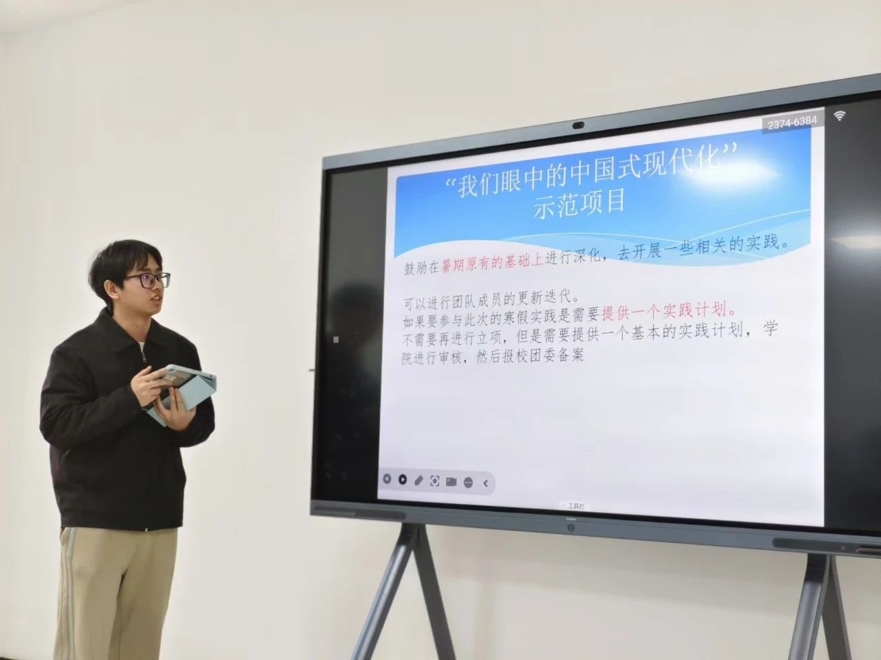会议伊始,刘璇宇老师首先对实践活动进行了概述,并向大家展示往期的优秀实践成果。接着,她向同学们分享了往届优秀实践参与者的思考与心得,同时指出了在实践过程中可能遇到的各种挑战及应对措施。通过她的详细讲解,同学们对社会实践有了更深入的理解,并为即将到来的机遇和挑战做好了更充分的思想准备。